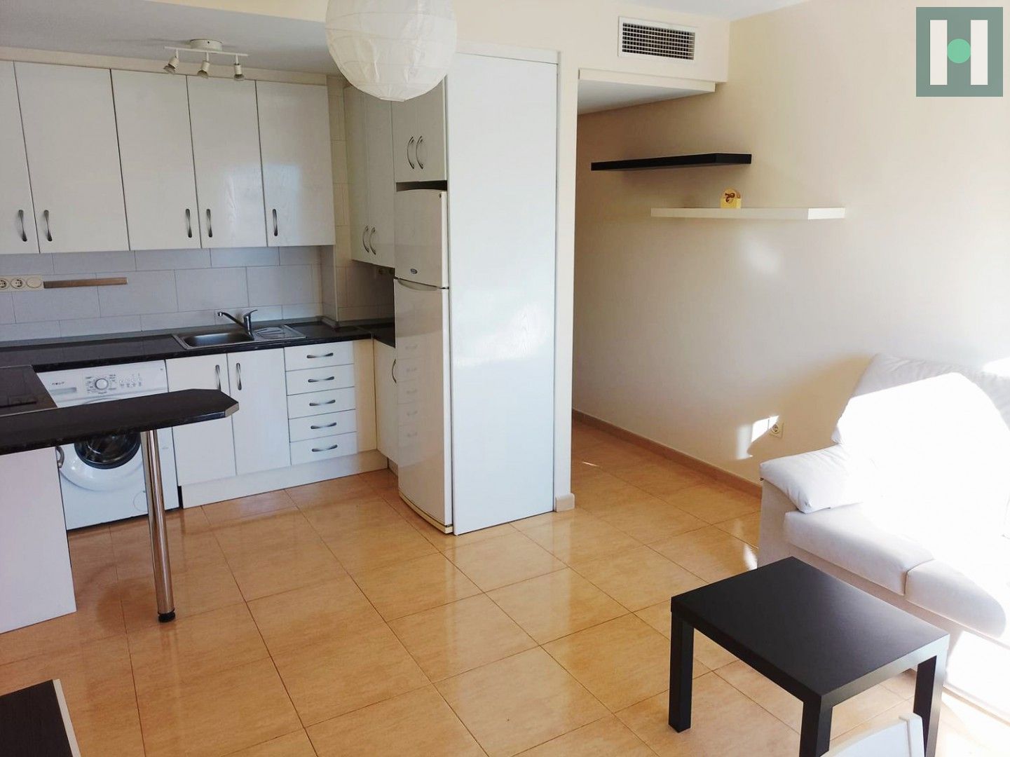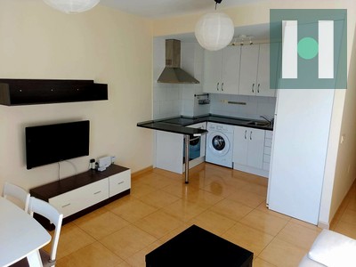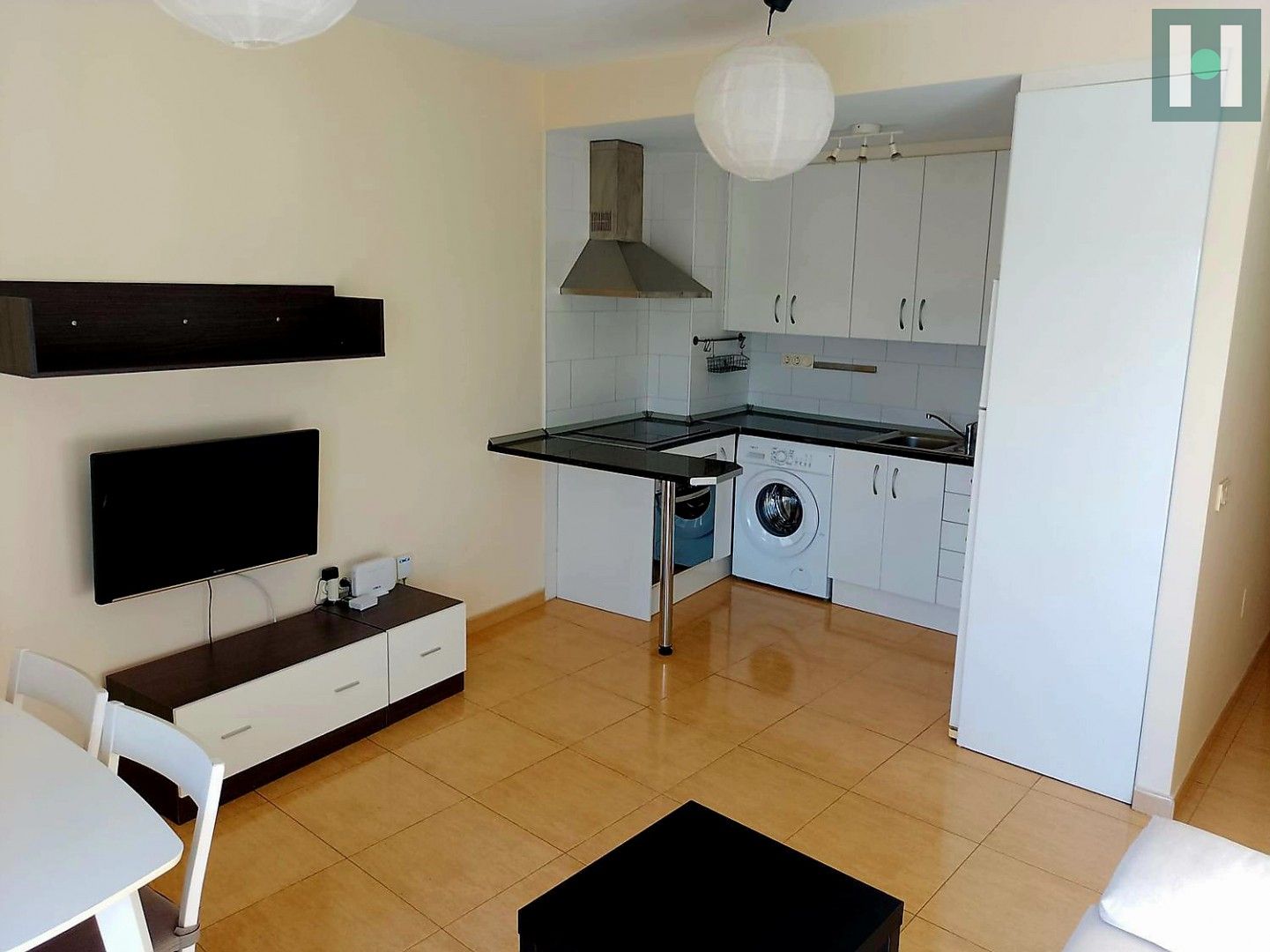 Salón con cocina amueblada